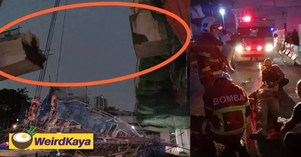 KUALA LUMPUR – Two people were injured after a concrete slab collapsed at the NKVE Sg Buloh-Kota Damansara highway at around 7 pm today, reported Harian Metro.