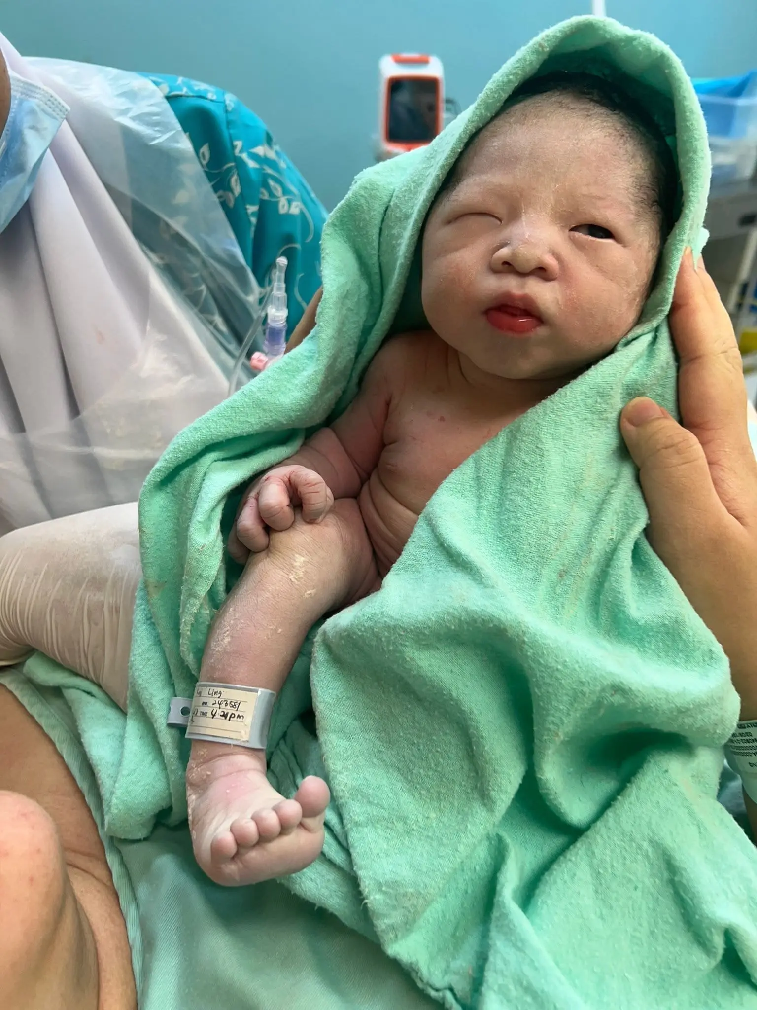 Kai Ling was dilated to two fingers when they arrived at the hospital safely, before giving birth to her baby at 4:21 pm.