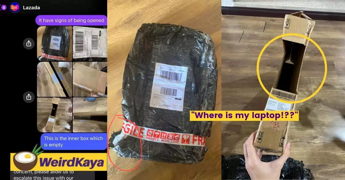After relaying this information to Baron, he quickly instructed her to unbox the parcel for further checking. To their utter shock, there was no laptop in the box!
