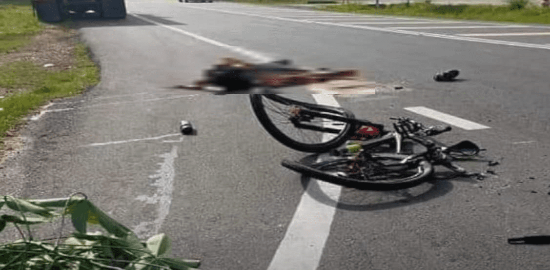SIK – A tragic accident occurred yesterday (12th Oct) at 9.30am; a cyclist was crushed to death by a lorry transporting a load of stones.