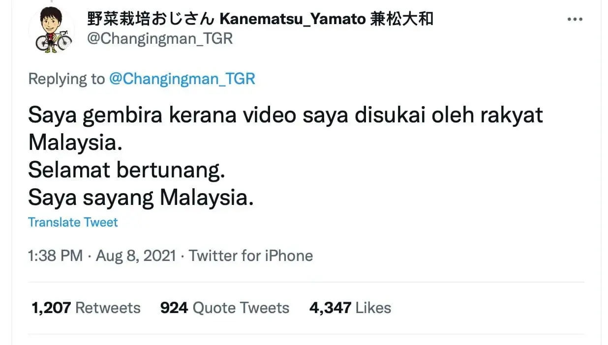 With so much positive response, Yamato could not help himself but return the favour. He responded to the enthusiastic replies by tweeting in Bahasa Melayu.