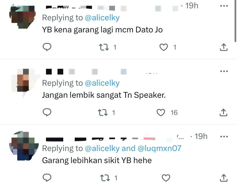 One netizen left a comment on Deputy Speaker Alice Lau’s recent tweet, suggesting that she should wear an Apple watch and have her songkok (traditional Malay headgear) change color to indicate her rising blood pressure.