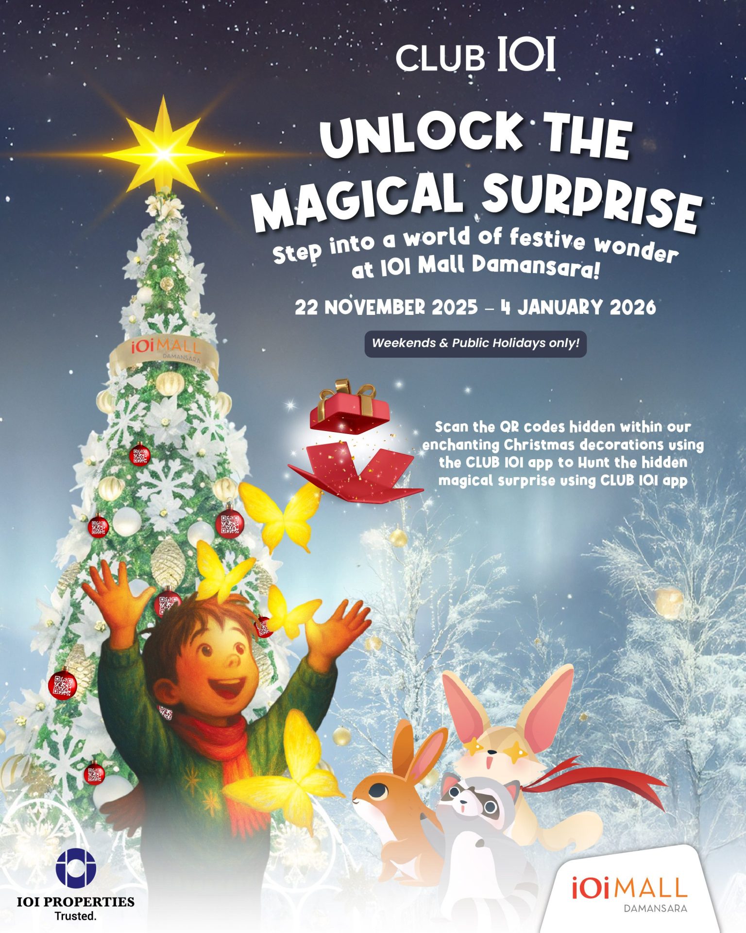 Shopping just got way more exciting. With the Unlock Magical Christmas treasure hunt, shoppers can explore the mall like never before. Simply use the CLUB IOI app and discover surprise QR codes hidden among the Christmas decorations at Centre Court.