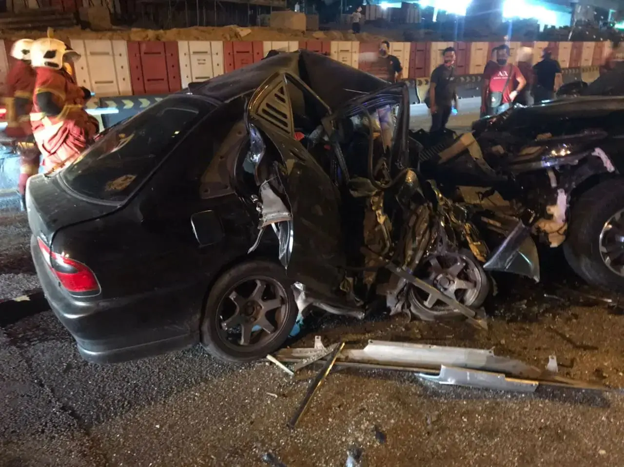 SHAH ALAM – Two teenagers perished in a horrific accident when their Proton Wira was crushed by a pickup truck driving against traffic at KM8.5 of the Federal Highway at around 1.30 am today.