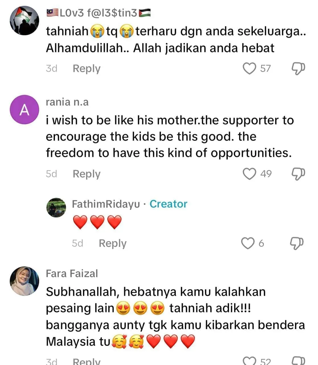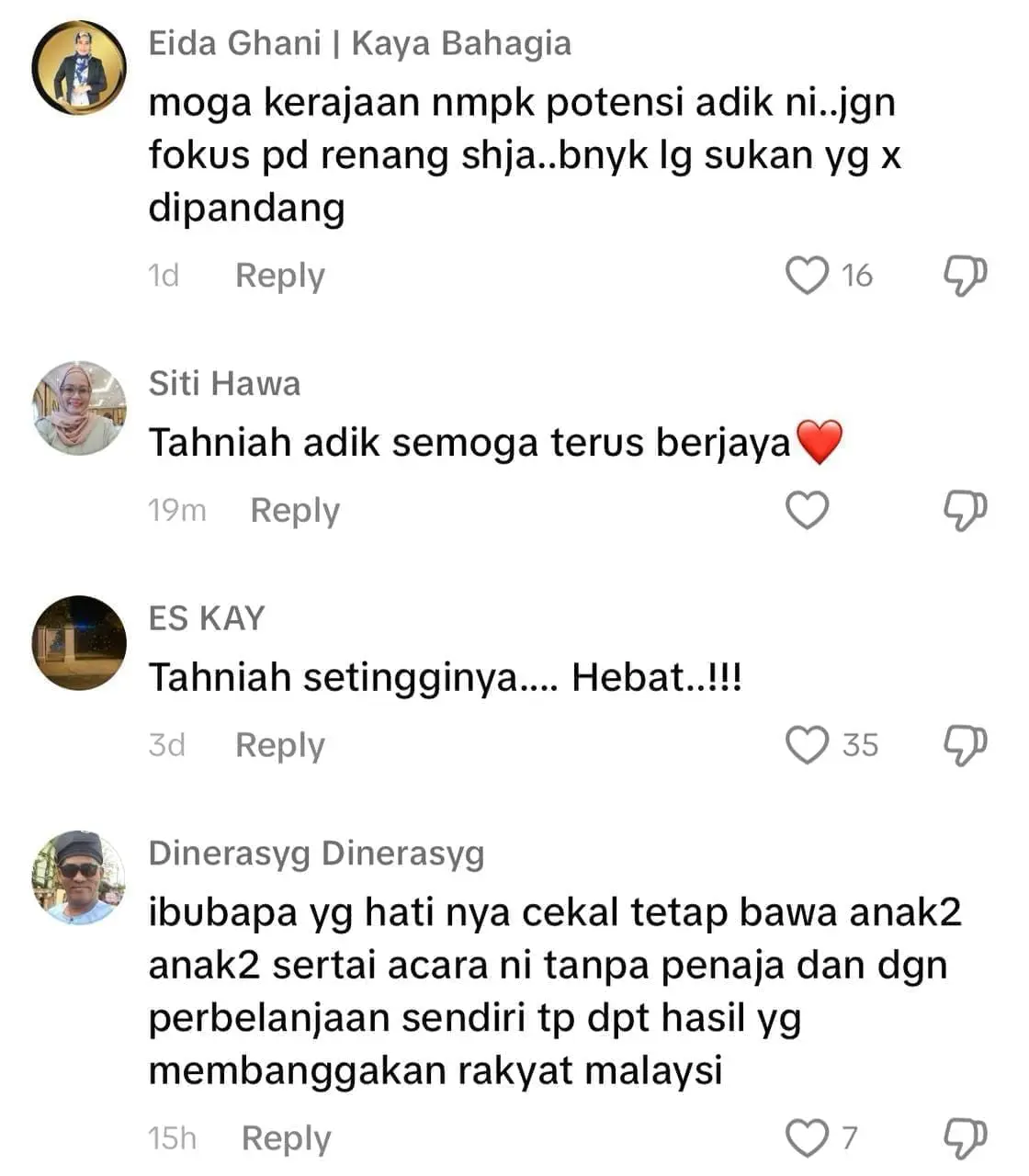 Meninjau ke ruangan komen, warganet berasa bangga melihat kejayaan mereka dan ada juga yang tidak putus-putus memberikan ucapan tahniah.