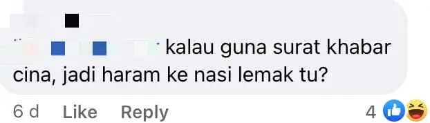One questioned, “If you use a Chinese newspaper, does that make the Nasi Lemak forbidden (haram)?”