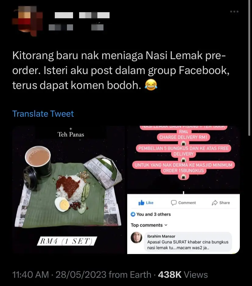 The netizen’s comment in the screenshot caught attention on social media, stating, “Why use Chinese newspapers to wrap Nasi Lemak? It doesn’t feel safe.”