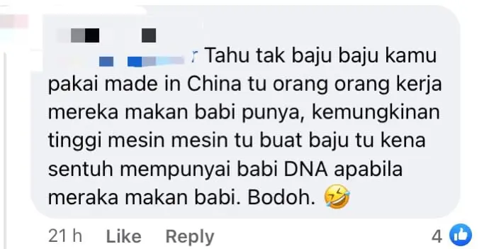 One netizen expressed his criticism by saying, “Do you know that the clothes you’re wearing, made in China, are likely touched by machines with non-halal DNA because the workers who make them also consume pork?