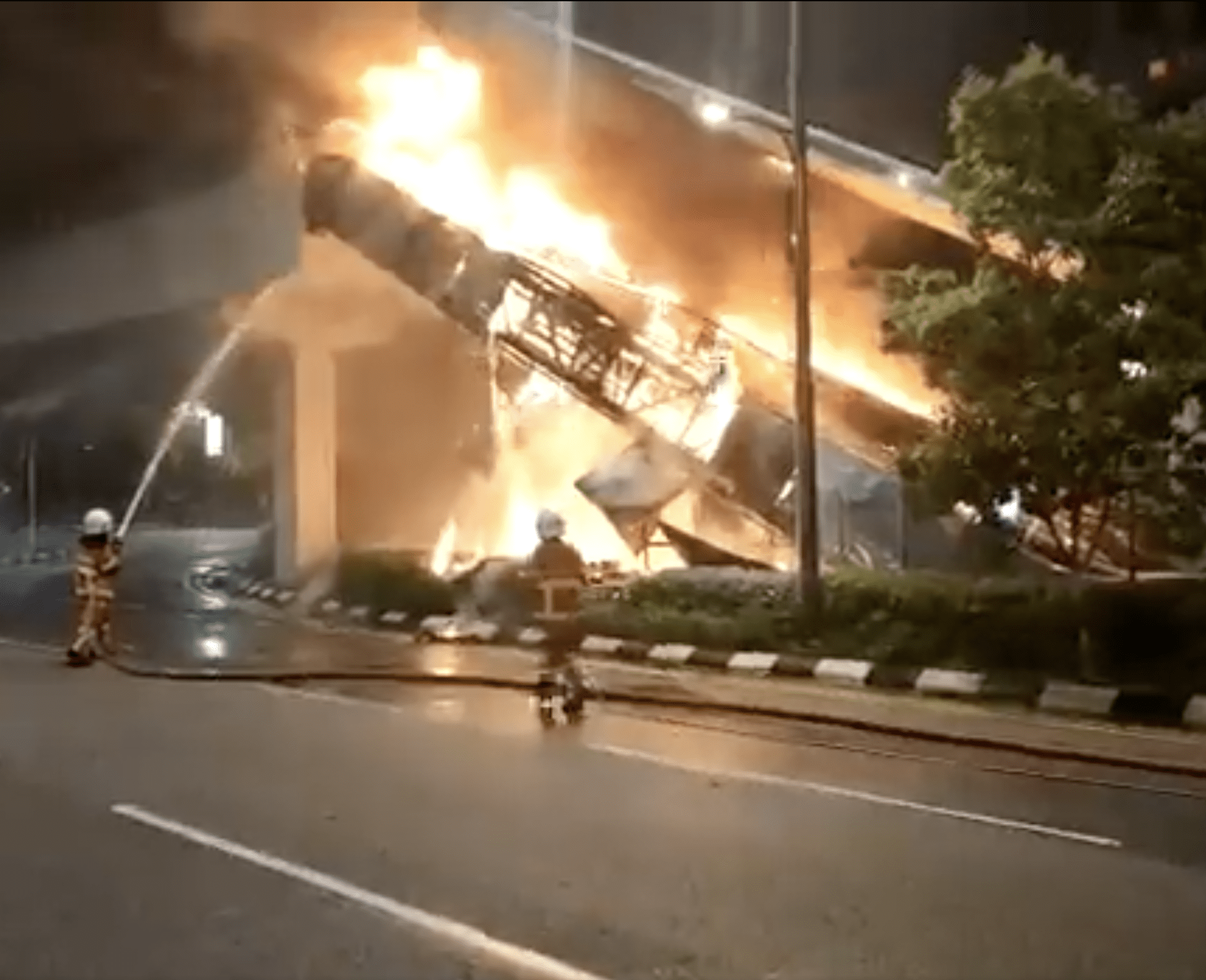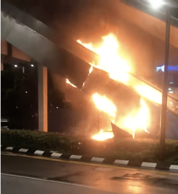According to a video shared by @redzuanNewsMPB, the fire can be seen spreading to the top of the pedestrian bridge.
