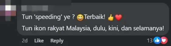 One user quipped, “Tun speeding, huh? Absolutely brilliant! Tun is Malaysia’s icon, past, present, and forever,” while another added, “Tun, you’re amazing!”