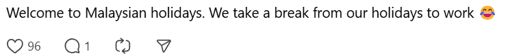 “Welcome to Malaysian holidays. We take a break from our holidays to work”