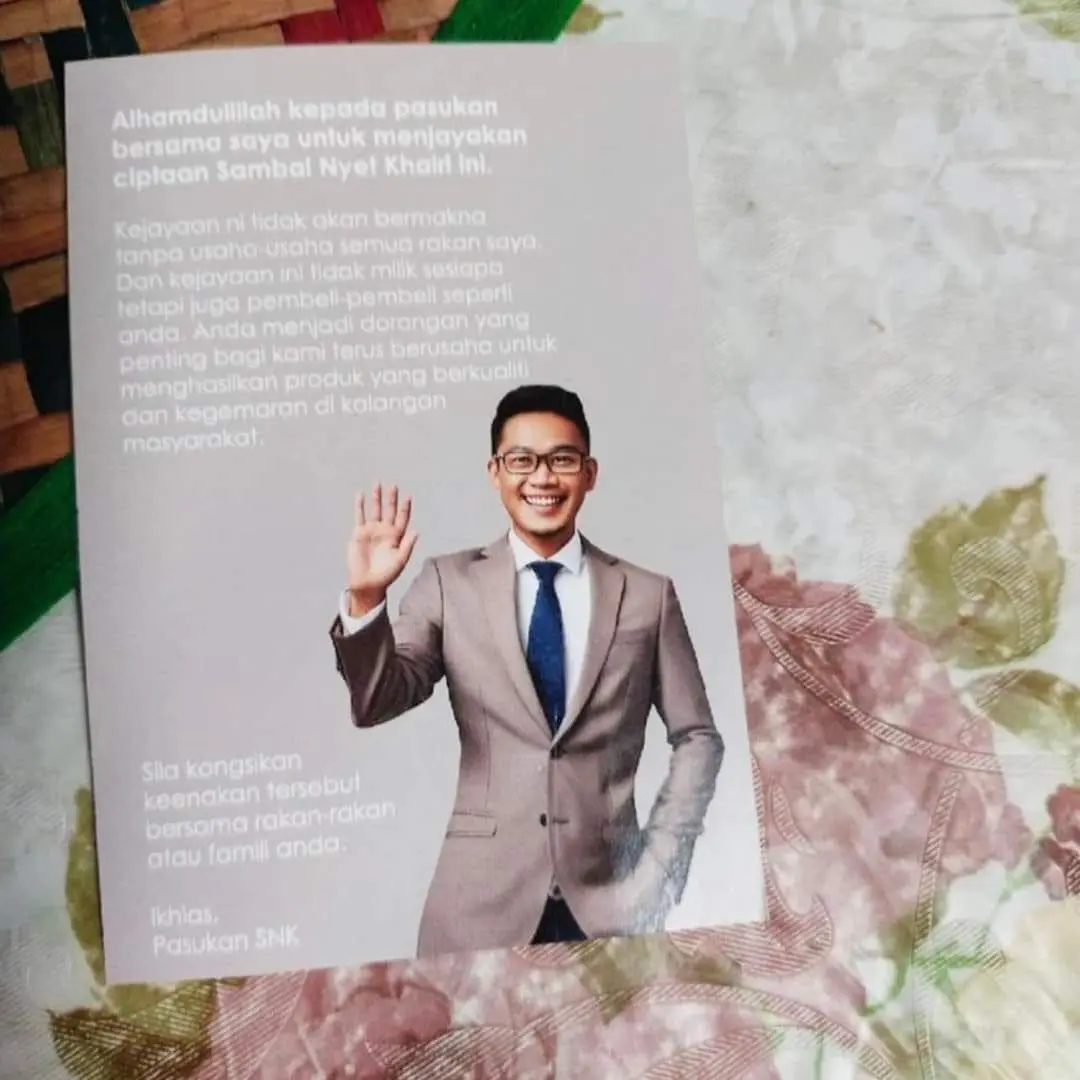 Again, this was clearly an attempt to rip off the thank you card that Khairul Aming sends to customers who purchased his sambal nyet.