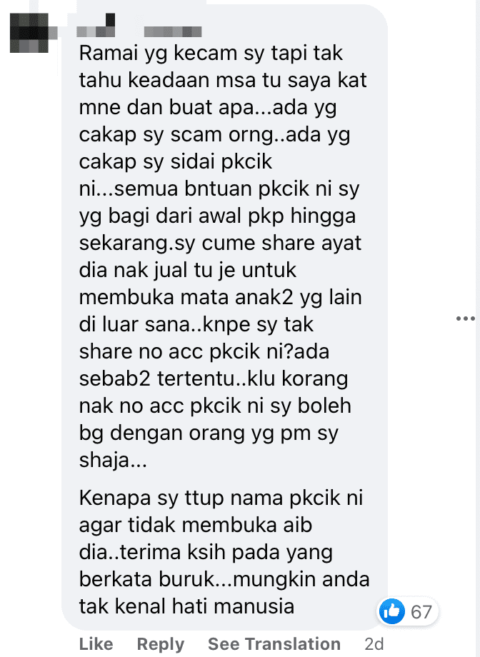 In response, Aidil pointed out that he had started to assist the uncle earlier during the pandemic.