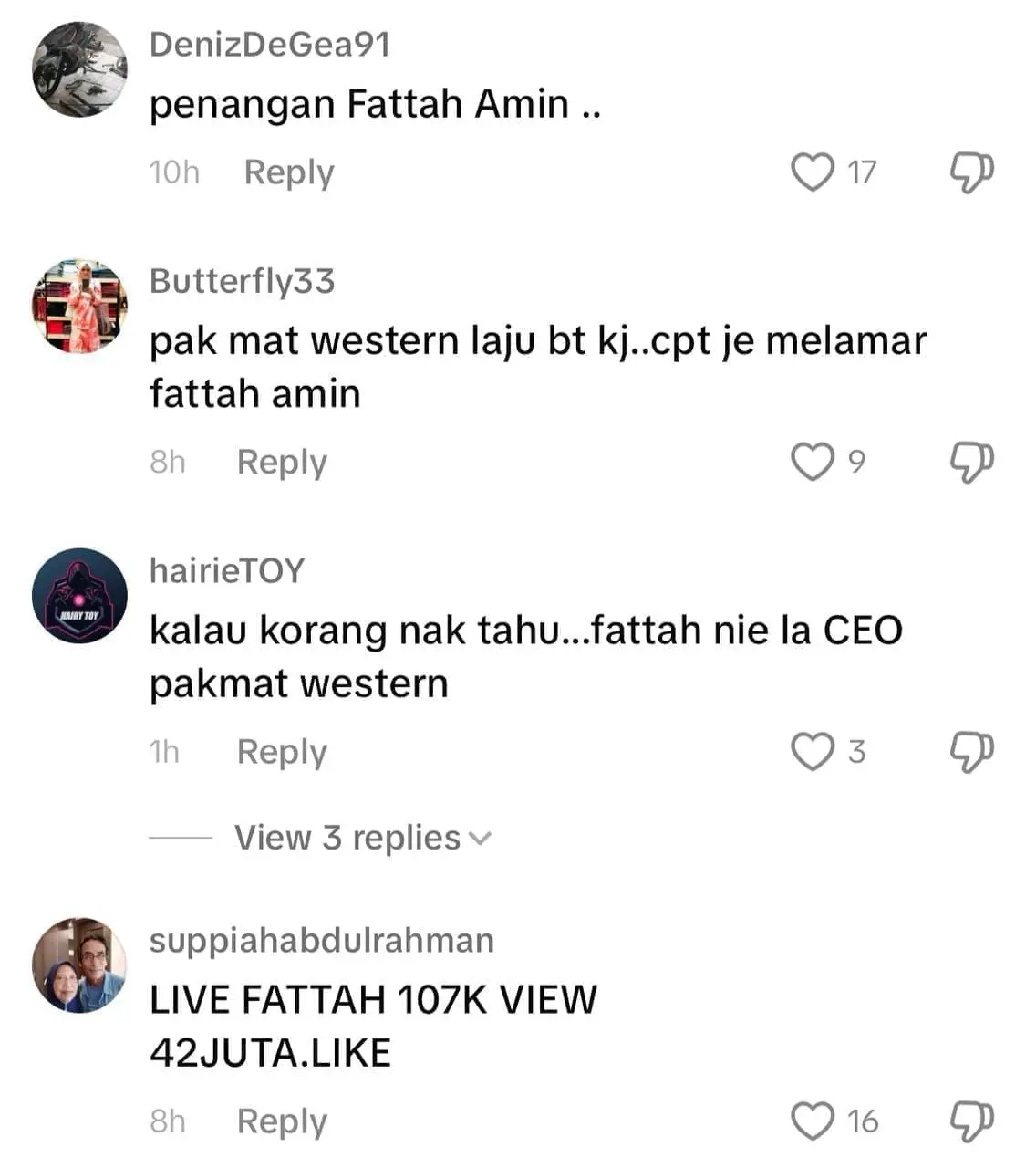 Meninjau ke ruangan komen, rata-rata warganet gembira mengusik Fattah dan ada juga yang meminta pelakon terbabit untuk menyanyikan lagu Wanita Terakhir sebagai salah satu permintaan daripada peminat.