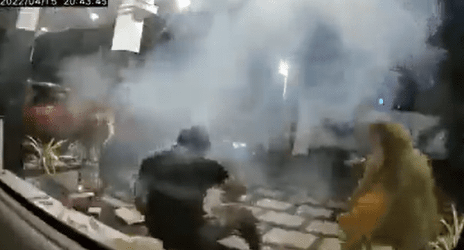 The explosion almost entirely ate up the man in white, making him not visible to the CCTV camera. However, the severity of his injuries remains unclear.