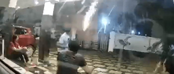 In the 10-second video posted on Twitter, the man in white was at the front porch of his home with three family members.