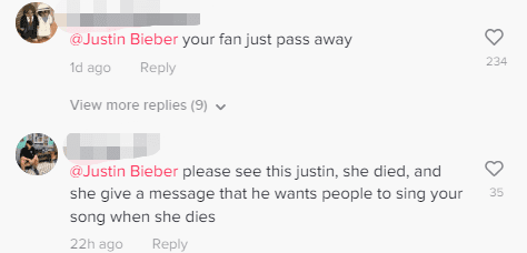 Some even tagged Justin Bieber’s official TikTok account in the comments, urging him to leave a kind word for his now deceased fan.