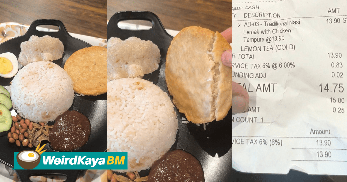 Menurut gadis tersebut, dia memesan nasi lemak chicken tempura namun tanpa disangka dirinya ditipu terang-terangan tatkala restoran terbabit menyajikan patty ayam sebagai chicken tempura.