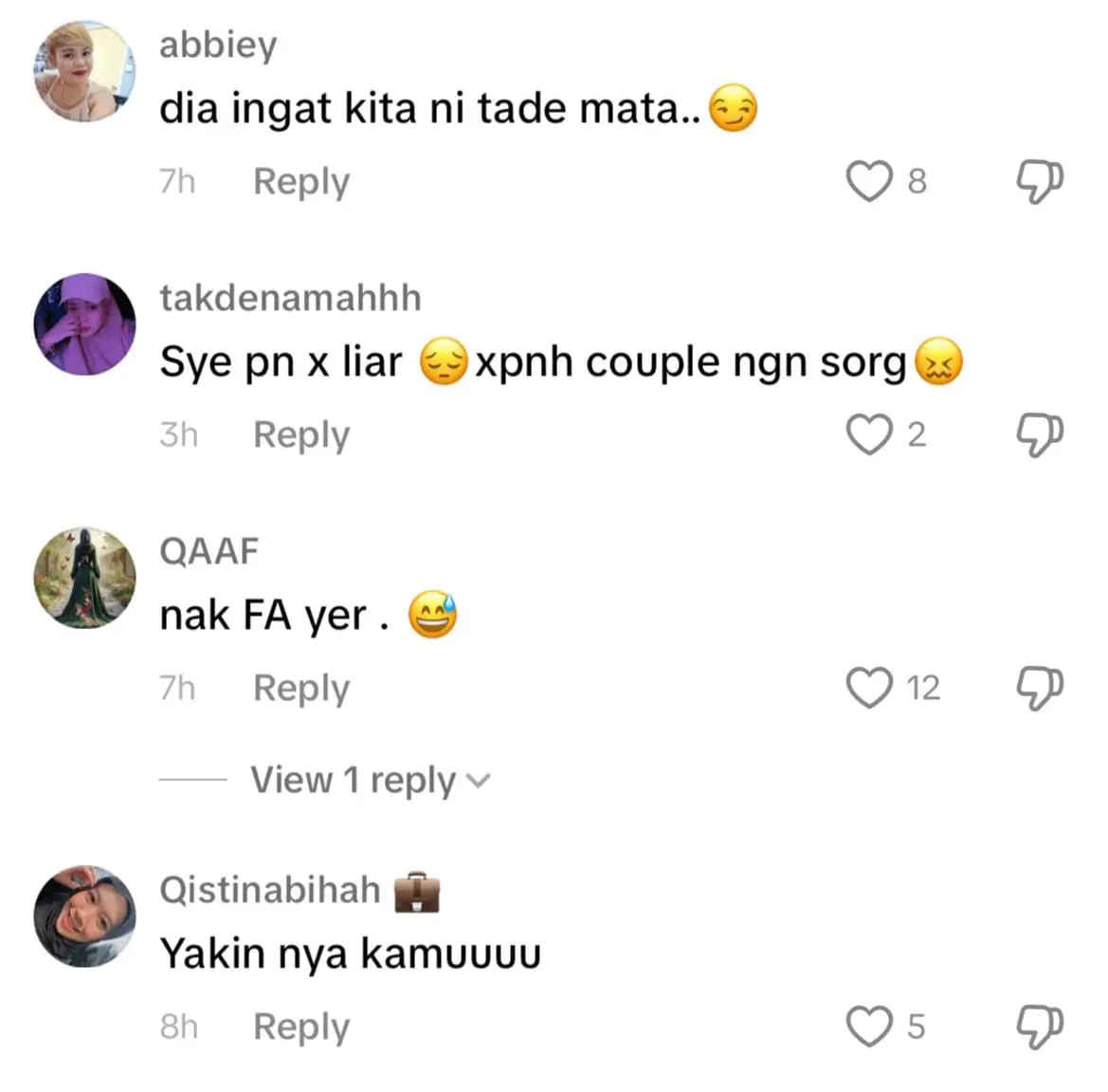 “Saya suka kehidupan sebagai pramugari, boleh buat apa yang saya ingin lakukan tapi saya bukan jenis yang liar. Saya tak pernah pergi kelab dan tak buat benda-benda terlarang,” ujarnya di TikTok