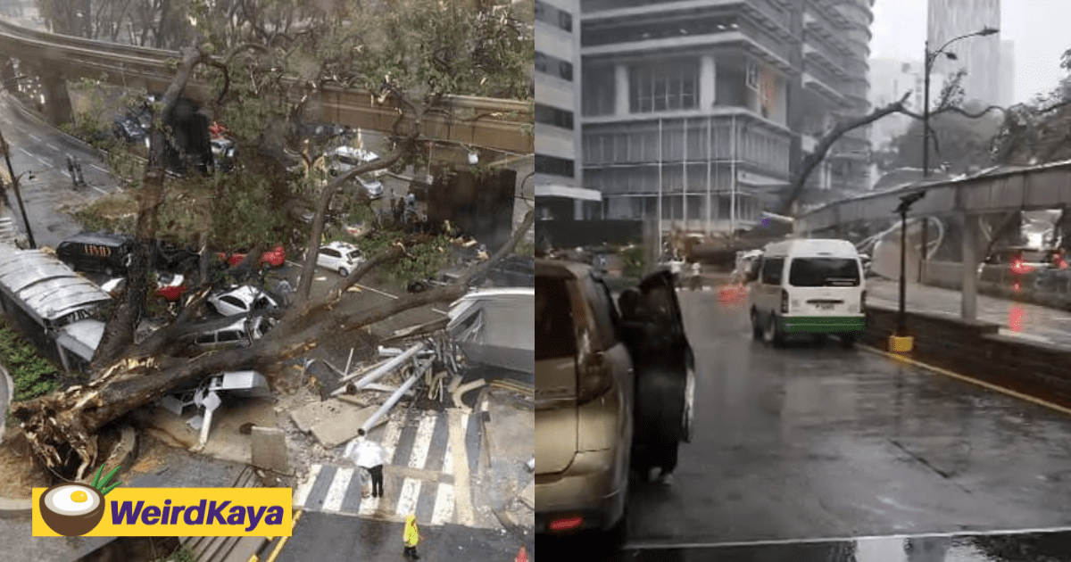 The fire and rescue department of Kuala Lumpur reported that its team rescued two individuals trapped under the fallen tree.