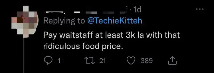 To further put things into perspective, she wrote that five slices of beef wellington totaled up to RM1,500, which was the minimum monthly wage for a waiter.