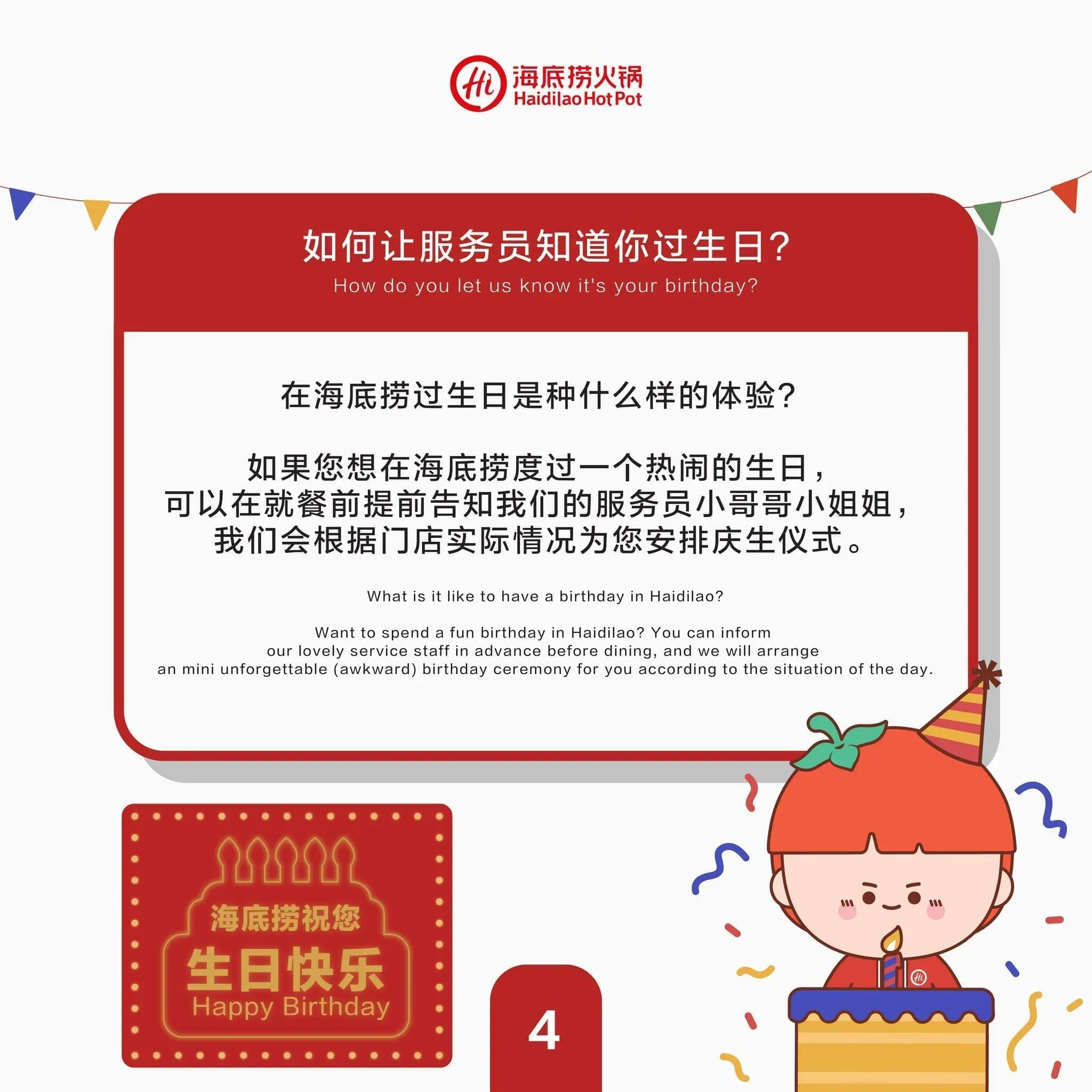 On a more positive note, Haidilao added that its birthday services are still available at all Malaysian branches.