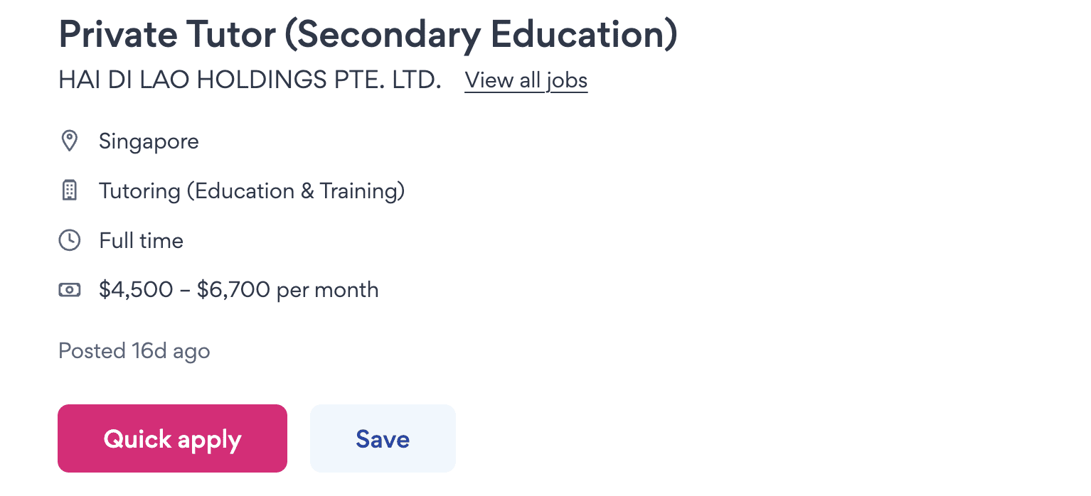 Haidilao Singapore is currently seeking to hire a full-time private tutor for secondary school students, as per a recent JobStreet listing dated April 8, 2024.