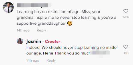 Others also praised the old woman for being an inspiration for the younger generation and commended @itsaizajustmint for her patience in teaching her grandmother.