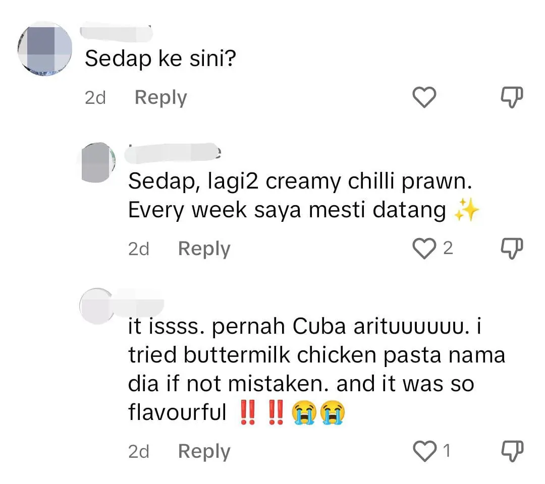 Meninjau ke ruangan komen, warganet terliur melihat keenakan pasta yang sangat creamy dan tidak sabar untuk berkunjung ke gerai terbabit.