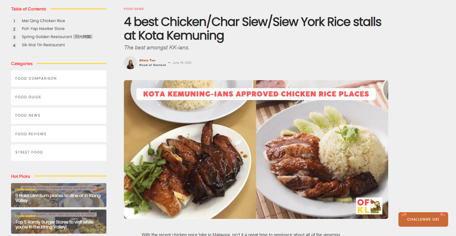 Readers and viewers also get a chance to challenge our reviews if they feel like the OnlyFood KL team didn’t do the food justice. By clicking the “Challenge Us” button on our articles, the team can tabulate the amounts of challengers to determine if a second review is needed.