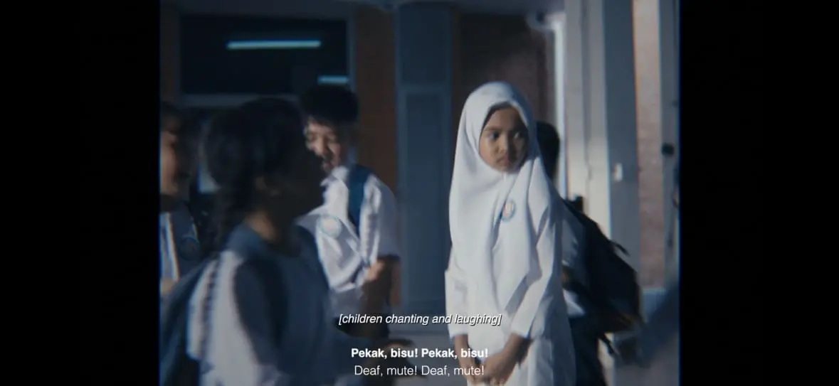 The video follows the emotional journey of a young girl who was born deaf and mute. As a child, she faced bullying and isolation from her peers due to her condition.