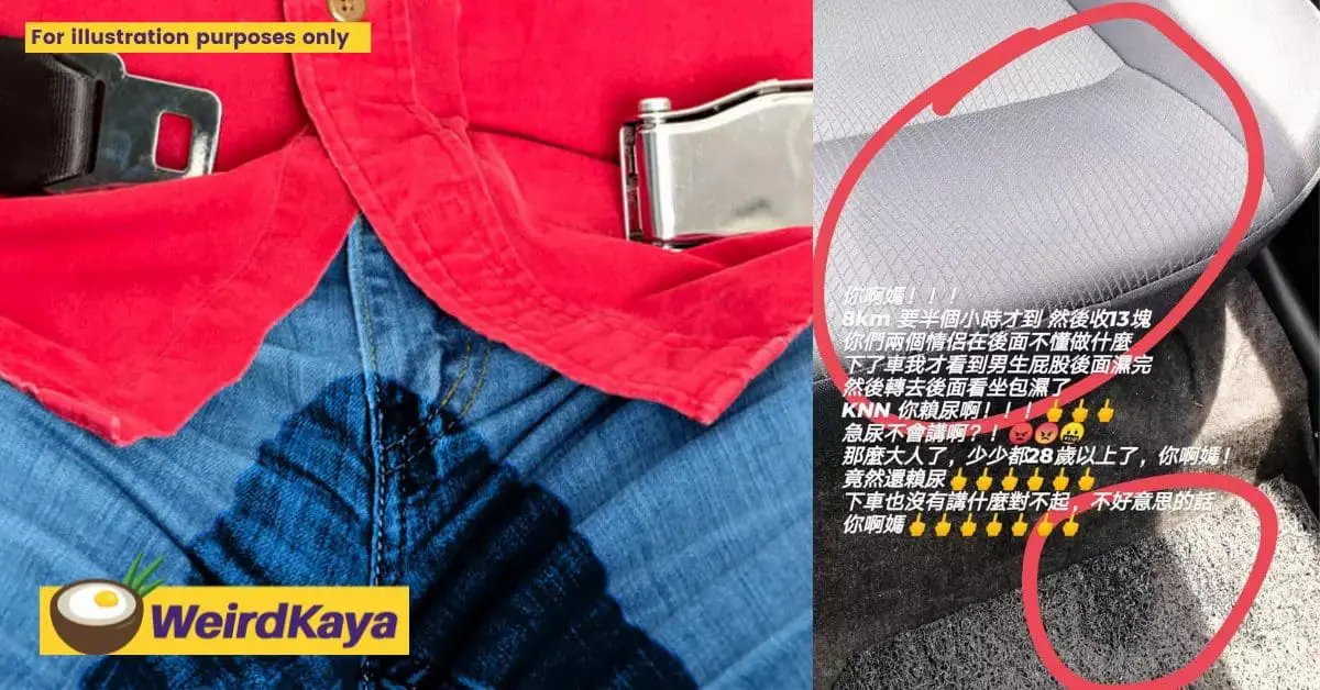 A Grab driver named Kingsley Chew took to Facebook to air his grouses over a customer who peed on the car seat and alighted from the vehicle without an apology.