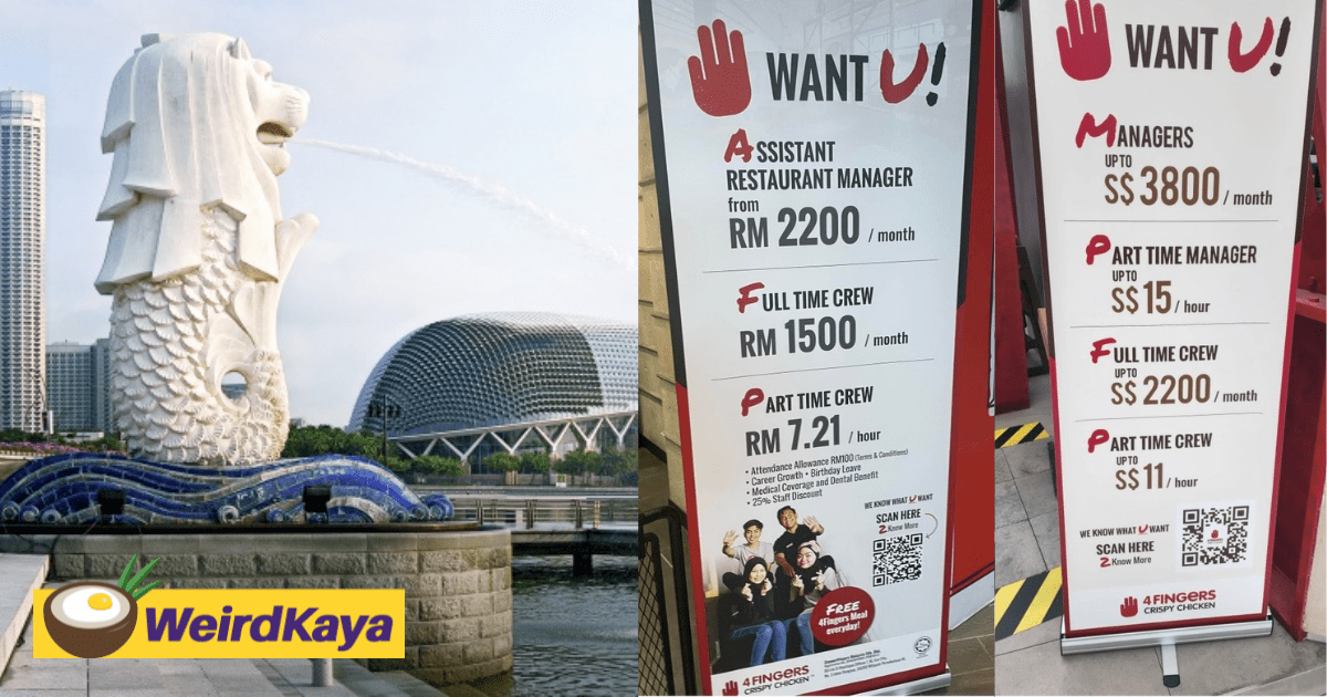 A viral photo shows two vacancy banners of Malaysia and Singapore respectively by the same fast food chain hiring the same job roles but in different currencies.