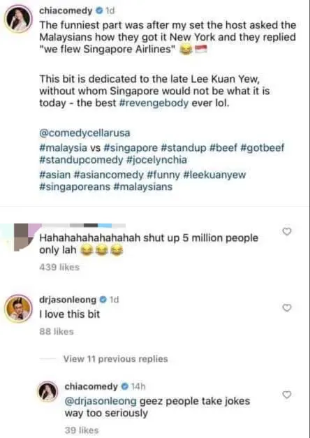 Amidst the backlash from Malaysian netizens towards Chia’s comments, Dr. Jason Leong stood out as one of the few who enjoyed Chia’s performance and appreciated her material.