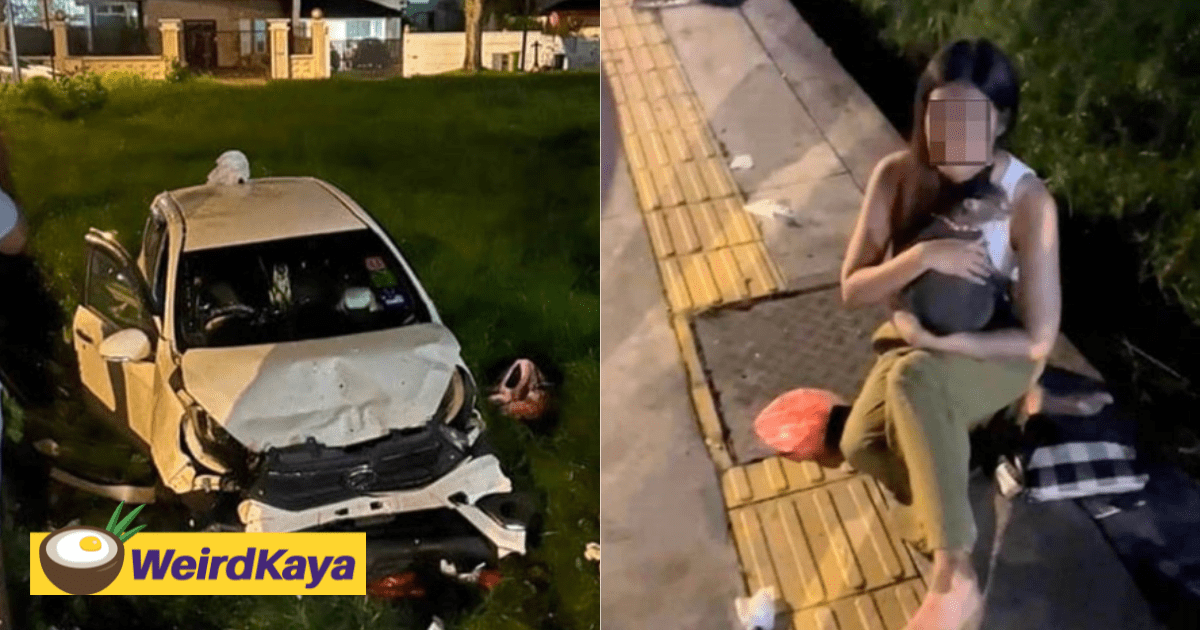 This was what happened to one woman in Penang after she got involved in an accident which left her car severely damaged.