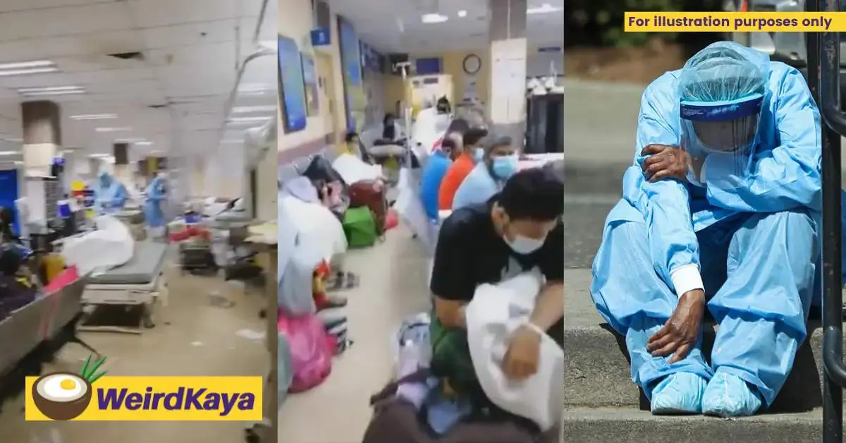 A pregnant frontliner retweeted a video showing the disastrous state of the Tengku Ampuan Rahiman Hospital in Klang, which has seen a mass stream of COVID patients flocking to its doors in recent weeks. Some patients were even placed at the parking lot to receive treatment due to a lack of beds.