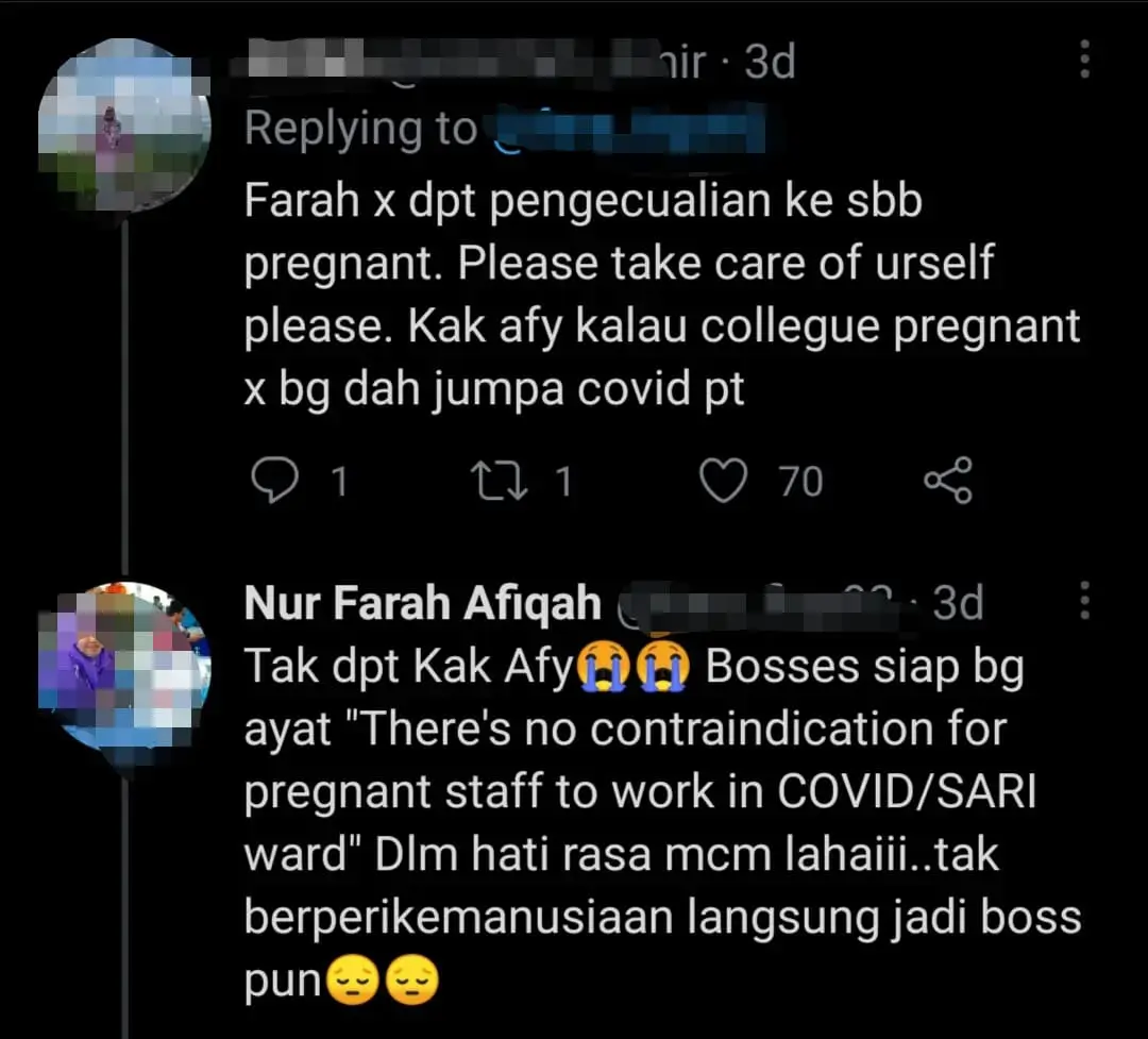 One netizen asked the frontliner why she wasn’t exempted from performing her duties due to her pregnancy. Unfortunately, the frontliner answered by saying that her boss didn’t see the need to do so.