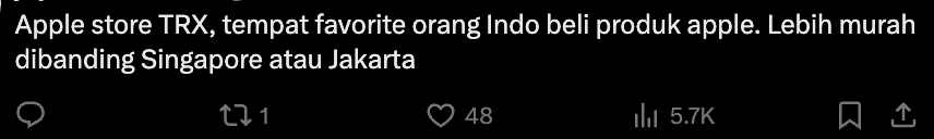 Recently, an Indonesian visitor took to social media to share their observations about Malaysia’s booming economy after spending just two hours inside the Apple Store.