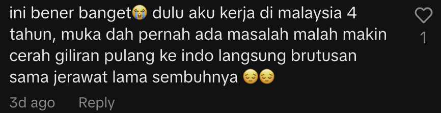 One woman shared that her skin became brighter and smoother after spending four years in Malaysia, but once she returned to Indonesia, she started breaking out again.