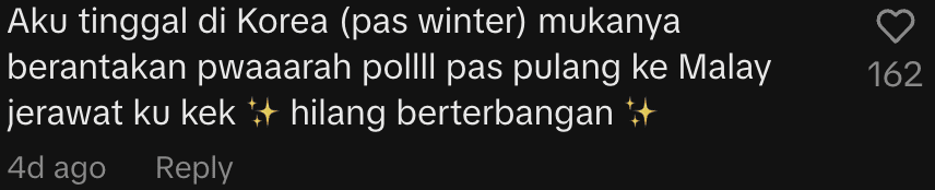 Some Malaysians also chimed in, sharing how traveling affected their skin. One person said their acne flared up while in South Korea but cleared up after returning to Malaysia.