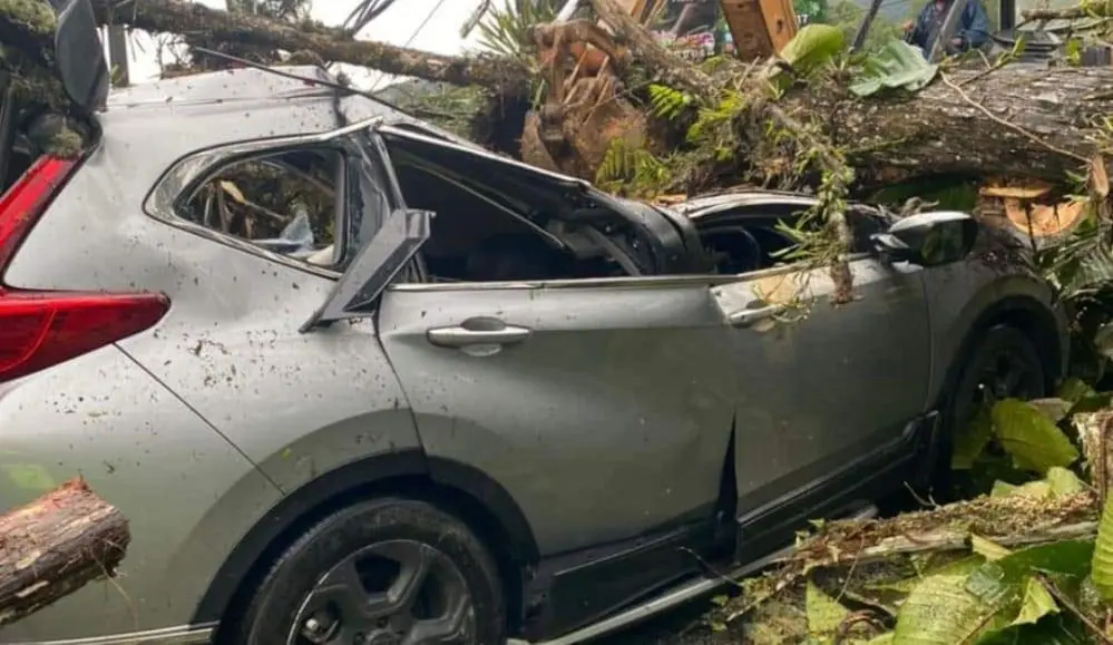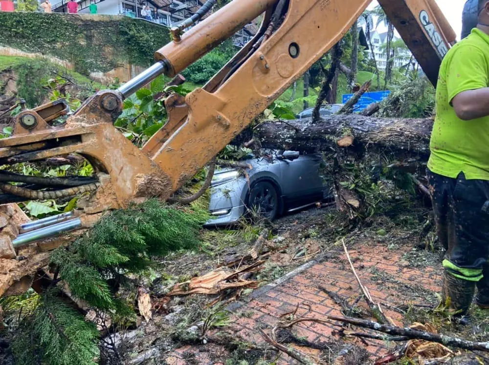 IPOH – A man suffered a nosebleed after the car he was traveling in with three others was demolished by a tree during a landslide near a hotel at Tanah Rata yesterday (Nov 22), reported Free Malaysia Today (FMT).