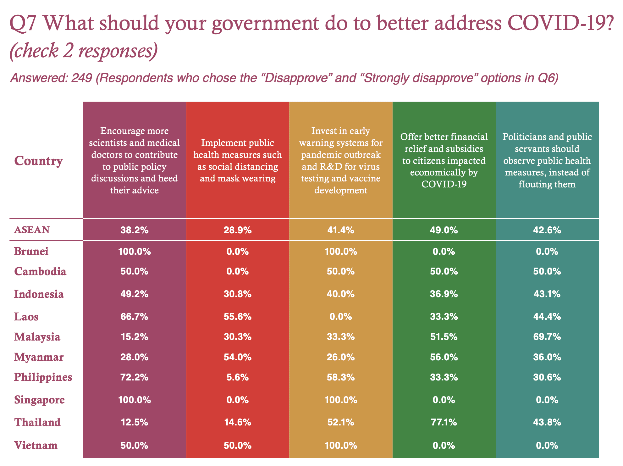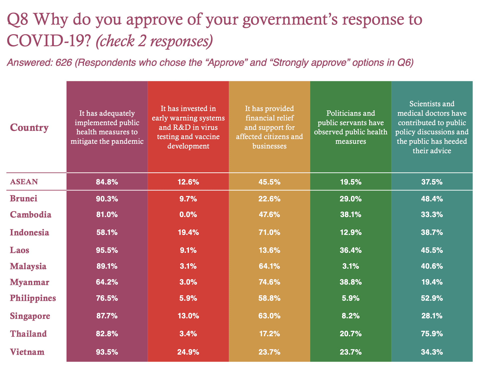 When it came to which country was the best in handling the pandemic, only 2.4% voted for Malaysia. This was a result of a combination of votes from Indonesia (3.1%), Laos (2.5%), the Philippines (1.5%), and Malaysia (16.2%).