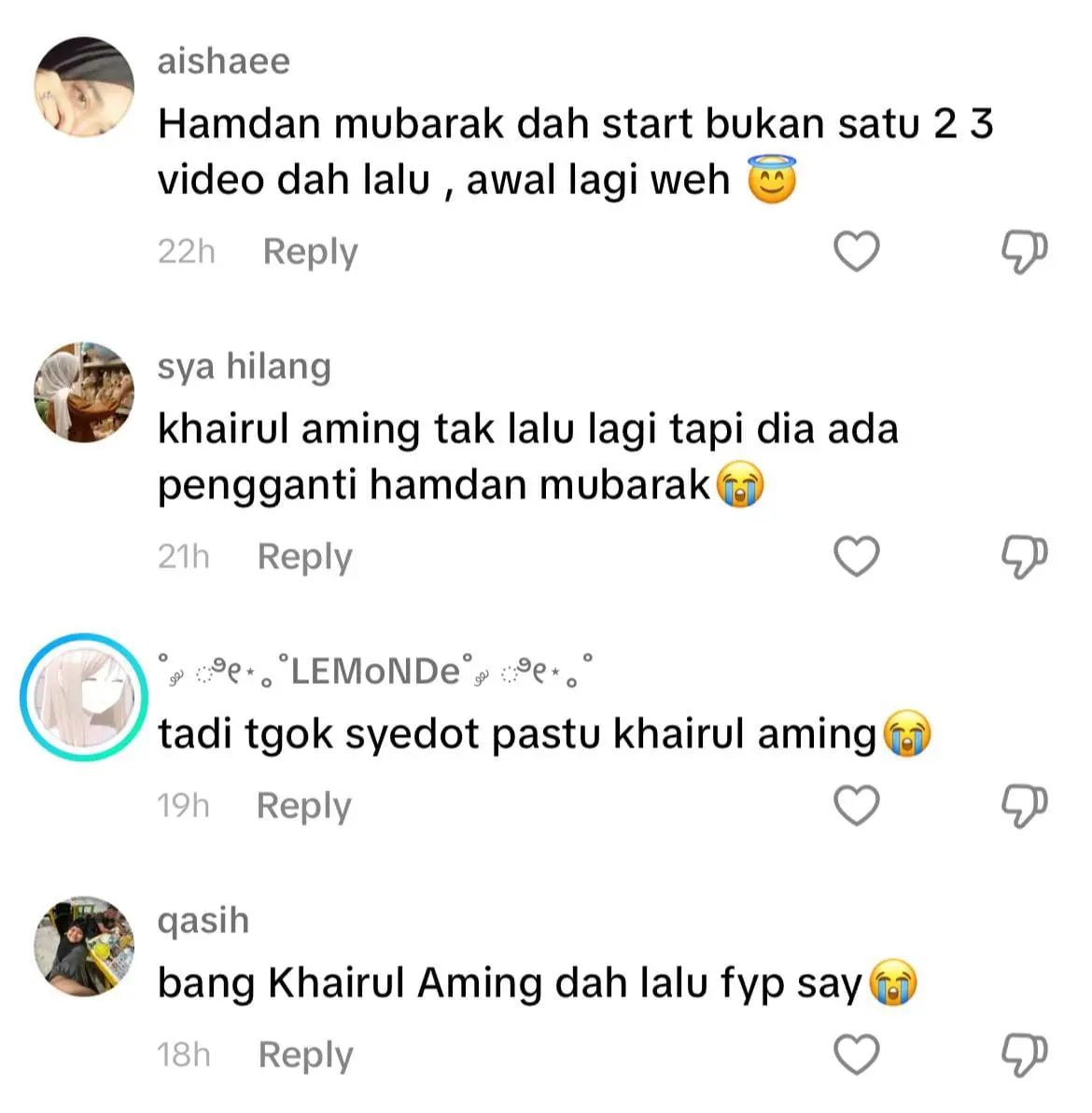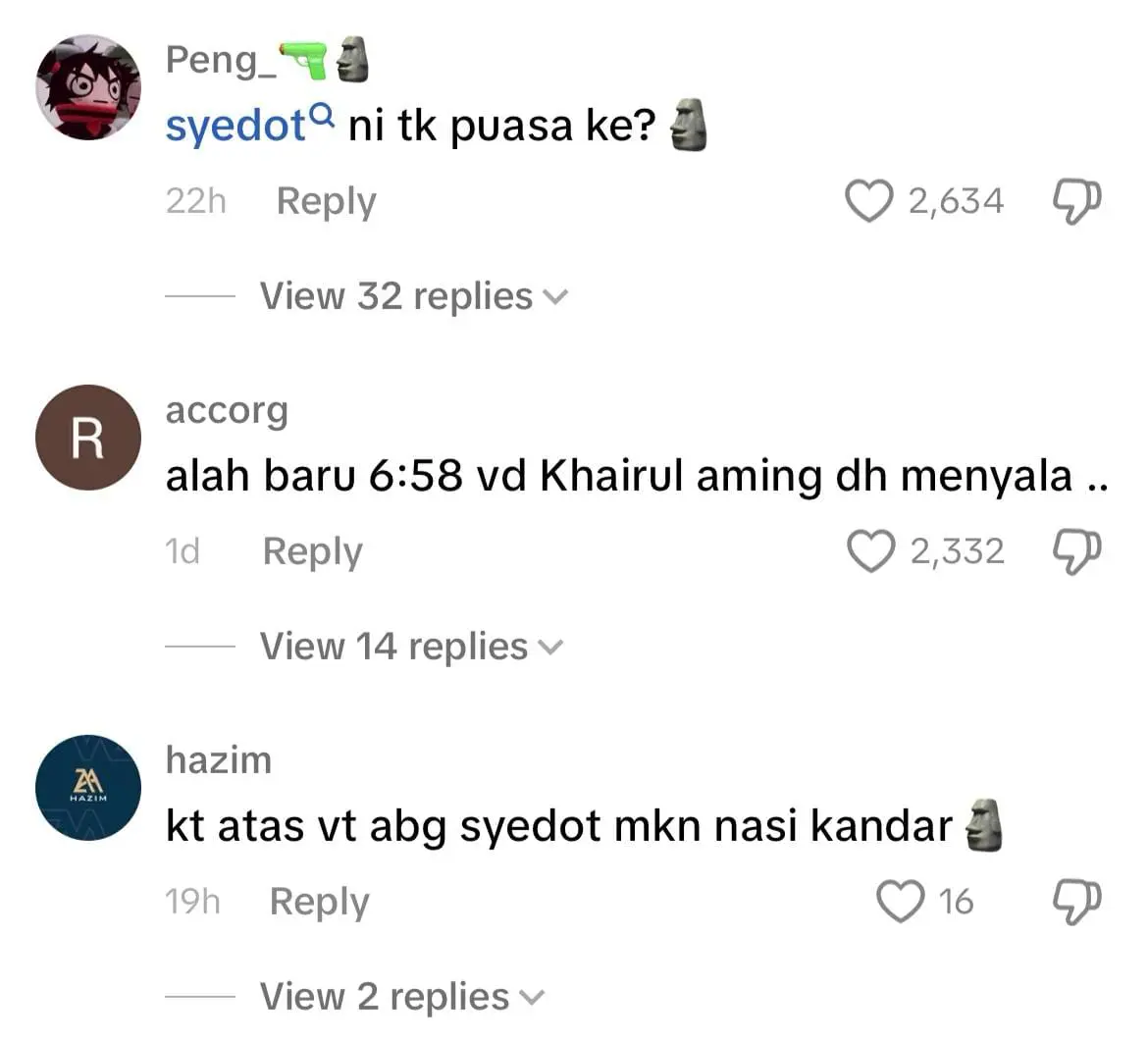 Tadi kat fyp keluar Khairul Aming😭 Pastu Che Sayang😭 Kalau time tak puasa takpe ni time puase dia nak fyp😔
