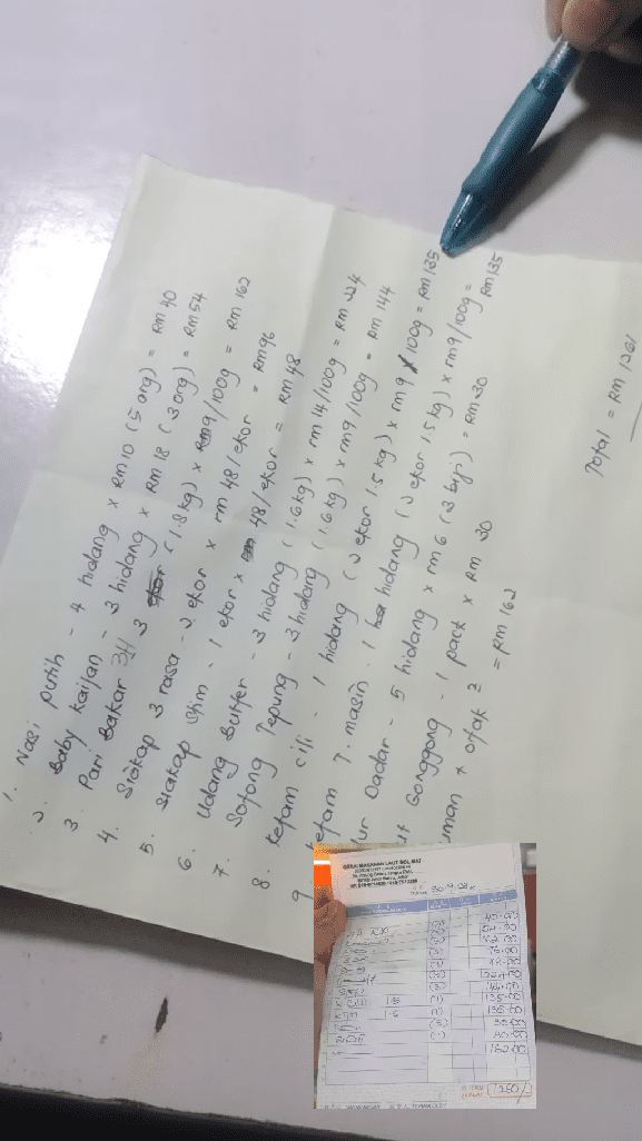Now, the stall owner is setting the record straight with a clearer handwritten bill.