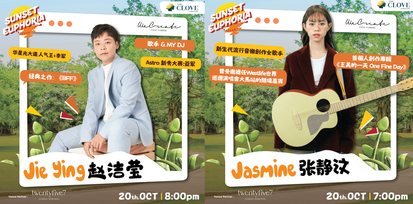 Mark your calendars for 12th October 2024 and 20th October 2024, as these popular Malaysian singers will be making a special appearance at the Sunset Euphoria Market!