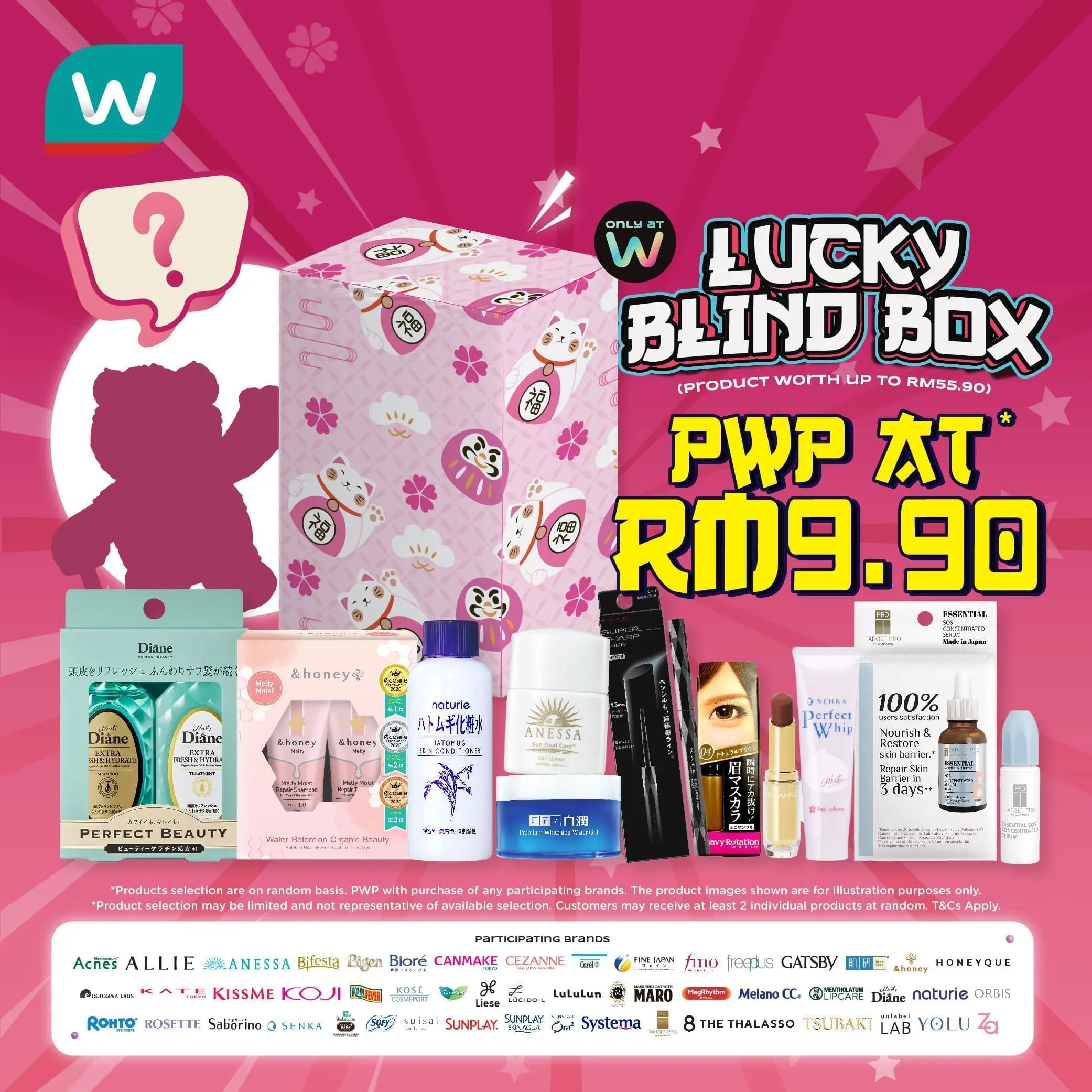 For just RM9.90, get a PWP (Purchase With Purchase) Lucky Blind Box packed with goodies worth up to RM55.90.