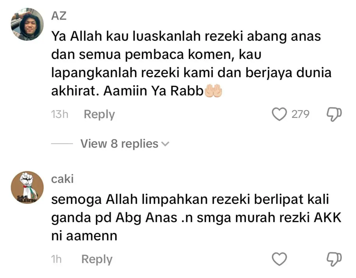Menelusuri ke ruangan komen, wargamaya sebak melihat sifat pemurah Anas dan mendoakan usahawan itu terus dimurahkan rezeki, berjaya dunia akhirat.