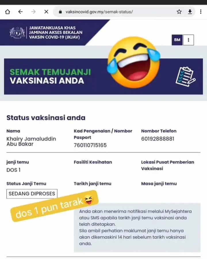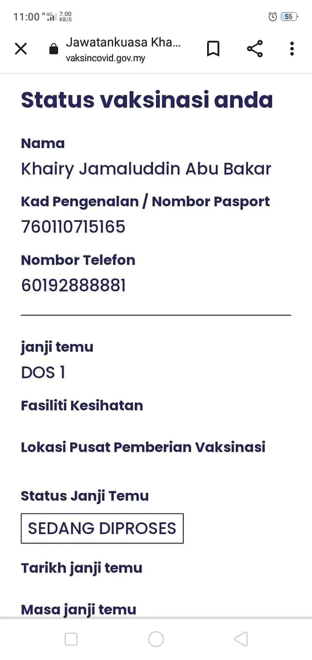 “I was given the CoronaVac vaccine on March 18 last year where it was broadcasted live on TV. I even showed my MySejahtera status for all to see.