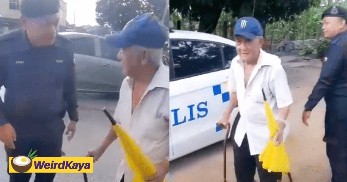 Patrol sergeants Aries and Azmi were on duty in the area when they noticed the elderly individual making his way home amidst the rain.