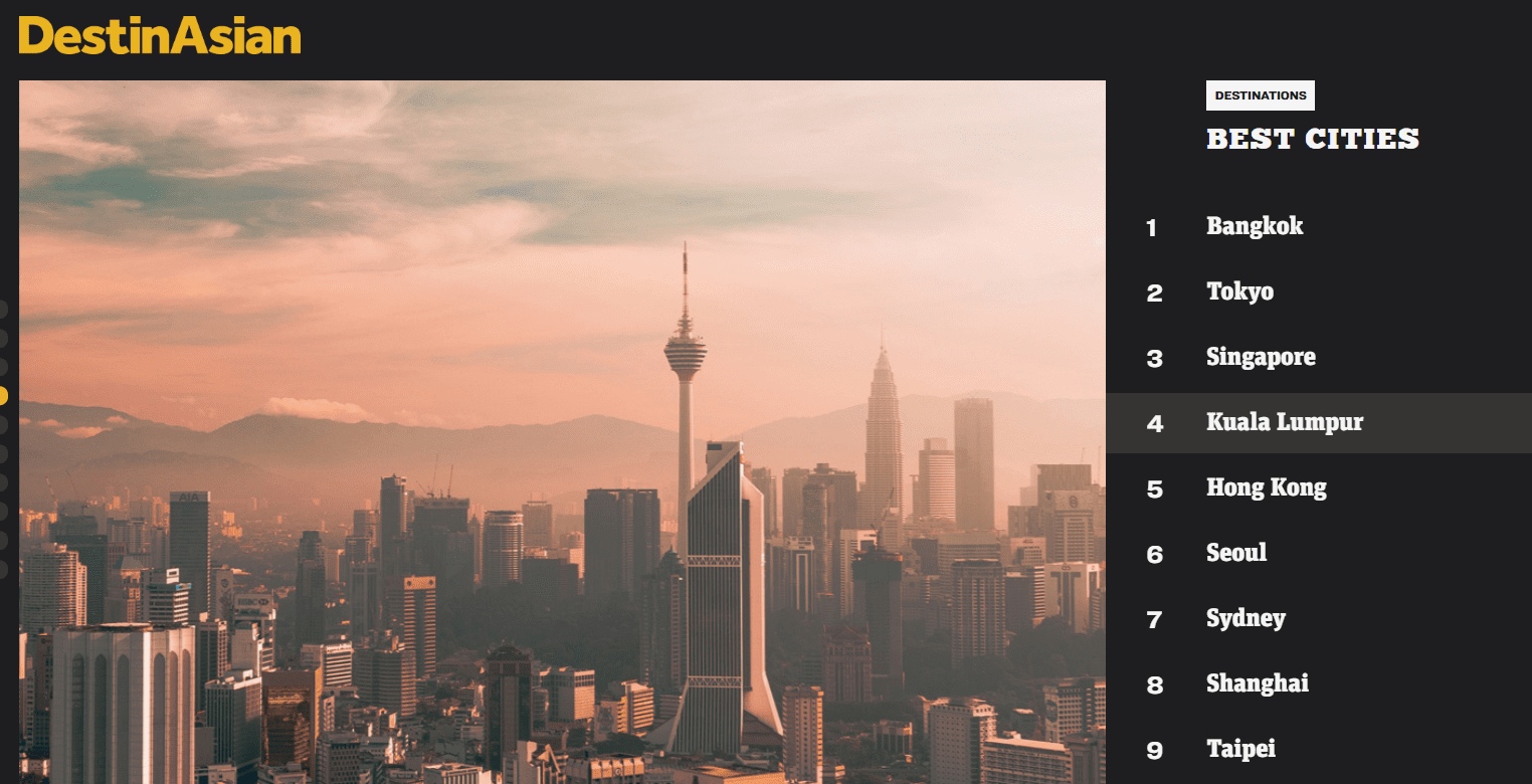 KL made a splash as the 4th favorite city, right up there with big names like Bangkok, Tokyo, and Singapore.